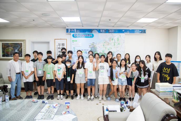 시장실에서 손님들을 맞은 강임준 군산시장은 함께 기념 촬영을 하며 어린 학생들을 반겼다.