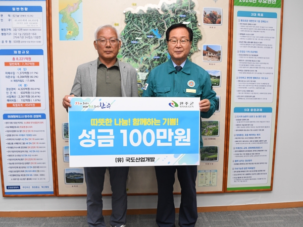 [뉴스서울] (유)국도산업개발이 지난 27일 완주군에 저소득층 가정을 위해 성금 100만 원을 전달했다.