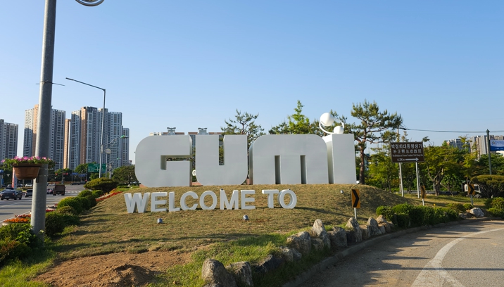 구미IC를 통과하면 넓이 12m, 높이 2.7m의 대형 ‘WELCOME TO GUMI’문자형 조형물이 방문을 환영하고, 구미시민운동장 이동 동선에 있는 입구 앞 회전교차로에 진입하면 트랙을 달리는 듯한 다이내믹한 육상경기 조형물을 만날 수 있다.