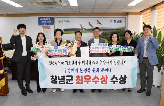 [뉴스서울] 창녕군은 지난달 31일 열린‘2024 전국 기초단체장 매니페스토 우수사례 경진대회’에서 경제적 불평등 완화 분야 최우수상을 수상했다고 밝혔다.