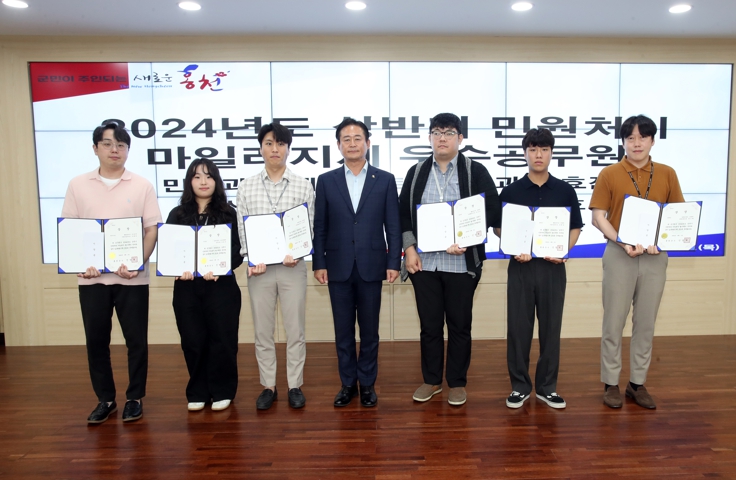 [뉴스서울] 홍천군은 지난 1일 2024년 상반기 민원 친절공무원 5명, 민원 처리 마일리지 우수공무원 9명을 선정하여 시상했다고 5일 밝혔다.