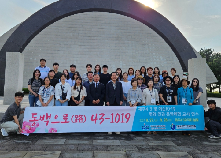 이번 연수는 제주⸱여수 교사 함께 걷는 길‘동백으로(路) 43-1019’ 주제로 제주시 원도심과 조천읍 및 서귀포시 안덕면의 무등이왓, 큰넓궤 등 4⸱3 유적지, 제주4⸱3 평화공원을 방문하고, 제주지역 교사들의 현장 해설을 통해 지역의 아픔을 공유·성찰하는 시간을 가졌다.