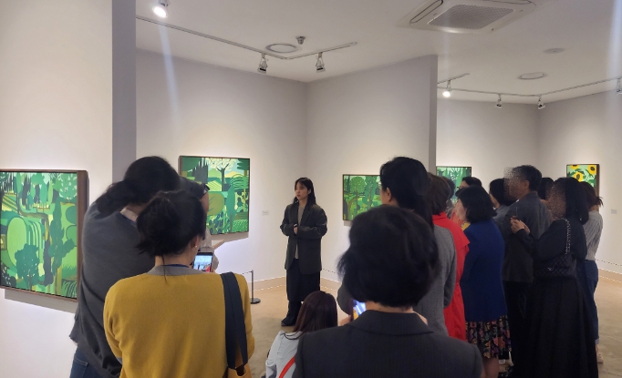 이와 더불어 17일은 김현수 화가가 일상에서 잊고 지내던 소중함과 아름다움에 대한 기억을 바탕으로 제주에서 보낸 유년 시절에 대한 회상과 초록색을 주조색으로 풍경화 작업을 하게 된 계기를 작품설명회를 통하여 말해주었고, 실제 풍경과는 다른 동그라미와 세모 등 단순화된 형태의 반추상적인 풍경화 작품이 나오기까지의 과정 등 관람객과 공유했다.