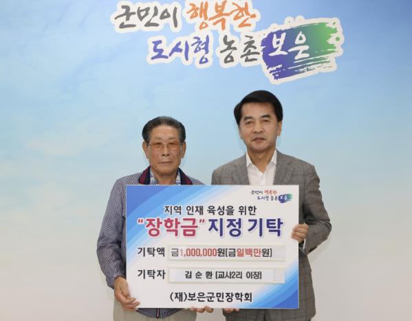 최재형 이사장은 “보은군 학생들의 밝은 미래를 위해 따뜻한 마음으로 나눔을 결정해 주신 김순환 이장님께 진심으로 감사하다”며 “기탁해 주신 장학금은 지역 인재육성을 위해 소중하게 사용하겠다”고 말했다.