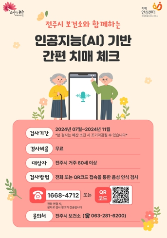 전주시보건소는 치매 고위험군을 조기에 발견하고 관리하기 위해 오는 7월부터 ‘AI 간편 치매 체크’ 서비스를 제공할 계획이라고 20일 밝혔다.
