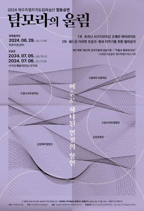 한편 2024년 제주도립예술단 합동공연은 오는 7월 5일과 6일 이틀간 서귀포예술의전당 대극장에서 개최된다.