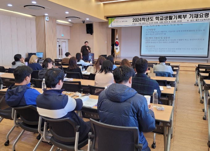 [뉴스서울] 제주시교육지원청은 3월 15일과 4월 12일은 중학교 교사를 대상으로, 3월 29일은 초등학교 교사를 대상으로 총 3회에 걸쳐 학교생활기록부의 충실한 기록 및 신뢰도 제고를 위한 ‘2024학년도 학교생활기록부 기재요령 연수’를 실시했다.