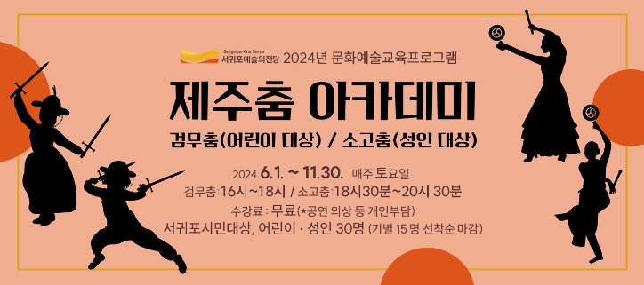[뉴스서울] 서귀포시 서귀포예술의전당은 2024년 다섯 번째 문화예술교육프로그램 제주춤아카데미 수강생을 5월 13일부터 선착순 모집(수강료 무료)한다고 밝혔다.