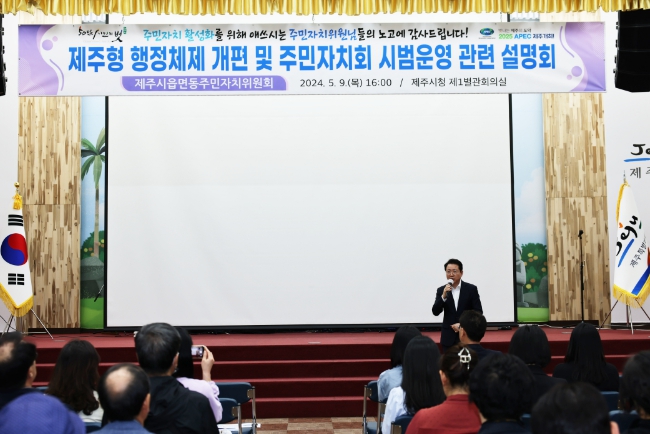 [뉴스서울] 제주시는 9일 시청 제1별관 회의실에서 읍면동 주민자치위원 및 담당 공무원을 대상으로 ‘제주형 행정체제 개편 및 주민자치회 도입’ 설명회를 개최했다.