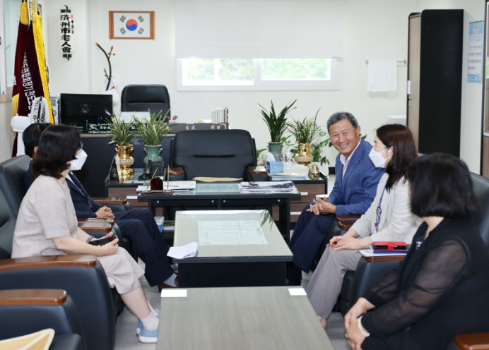 [뉴스서울] 김완근 제주시장은 7월 5일 대한노인회 제주시지회를 찾아 취임 인사를 드리며 관계자들과 함께 소통의 시간을 가졌다.
