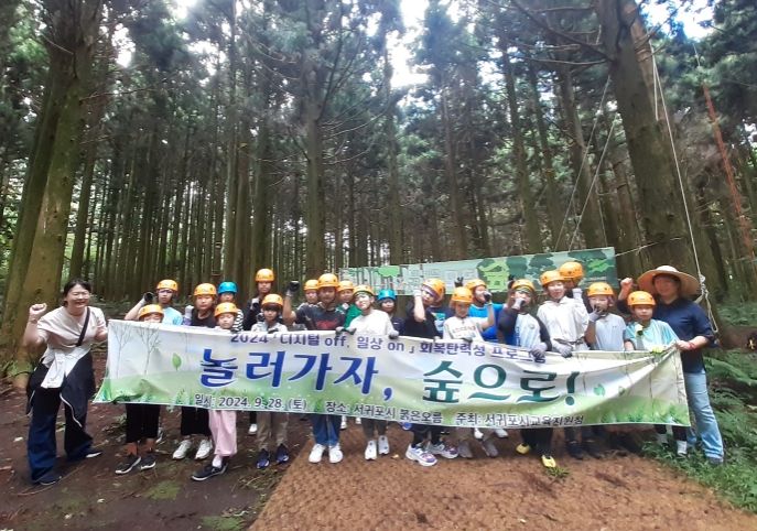 [뉴스서울] 서귀포시교육지원청은 9월 28일 서귀포시 초등학교 4~6학년 학생 30명을 대상으로 2024 (디지털off, 일상on) 회복탄력성 프로그램 ‘놀러가자, 숲으로’ 를 운영했다.