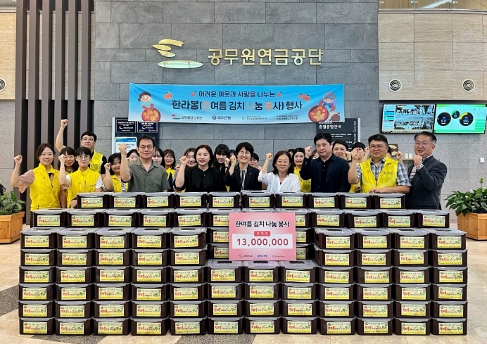 공무원연금공단 강선영 실장은“ 이번 여름 폭염으로 힘드실텐데 한여름 김치나눔을 통해 어르신들이 건강하게 무더위를 잘 이겨냈으면 좋겠다고”전했다.