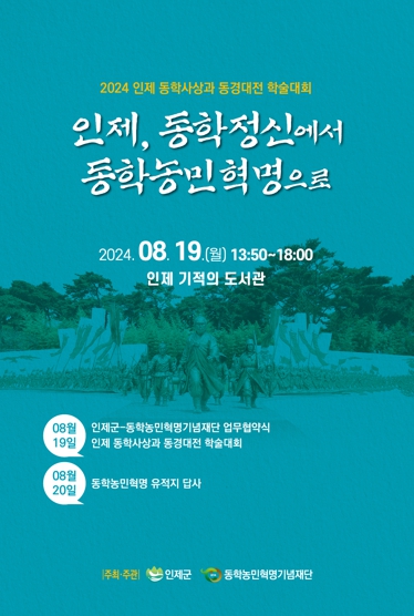 인제군은 오는 8월 19일 인제 기적의도서관 사랑채에서 동학농민혁명기념재단(이하 재단)과 ‘인제 동학사상과 동경대전 학술대회’를 공동개최 한다고 밝혔다.