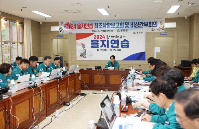 [뉴스서울] 청도군은 19일 군청 지하 종합상황실에서 ‘2024년 을지연습 최초상황보고회’를 개최했다.