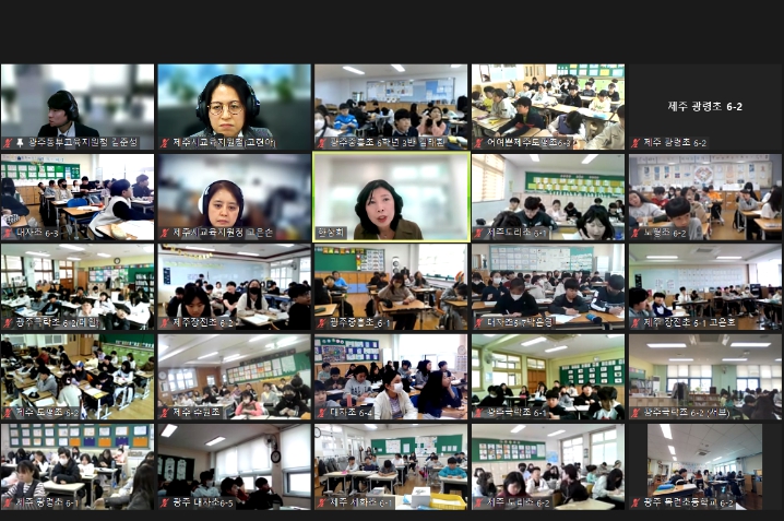 결연을 한 전체 학급 학생이 온라인에서 만나 수업을 듣는‘평화·인권 사람 책 수업’은 첫 번째 시간으로 지난 2일 한상희 교감(서귀포여자중학교)을 전문가 강사로 초청하여 제주4ㆍ3을 주제로 역사적 사건을 알아보는 시간을 가졌다. 앞으로 4월 18일 4·19혁명, 5월 9일 광주 5ㆍ18민주화운동과 관련된 수업을 진행할 예정이다.