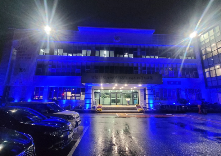 ▲ 제주시교육지원청 건물 '블루라이트 캠페인(Light it up blue)' |