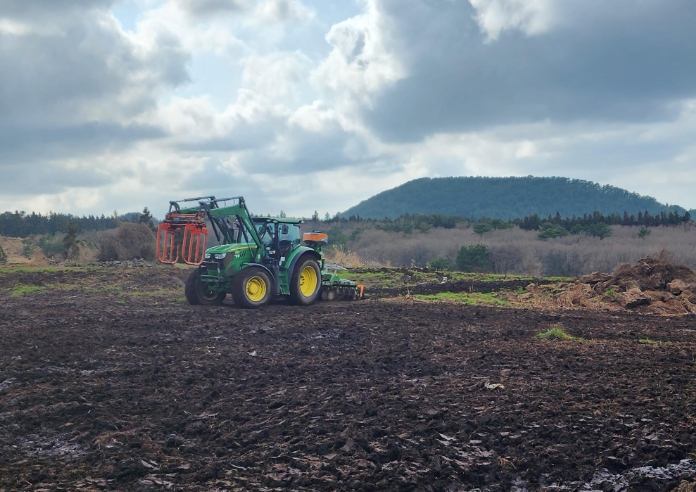 | ▲ 가축분뇨 액비 살포 후 로터리(밭갈기) 작업 |