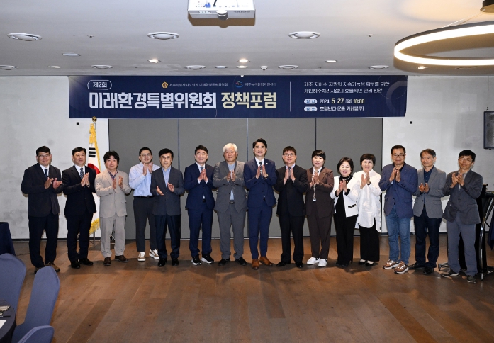 [뉴스서울] 제주특별자치도의회 미래환경특별위원회는 제주녹색환경지원센터와 공동주최로 5월 27일 호텔난타에서 “제주 지하수 자원의 지속가능성 확보를 위한 개인하수처리시설의 효율적인 관리방안”이라는 주제를 가지고 정책포럼을 개최했다.