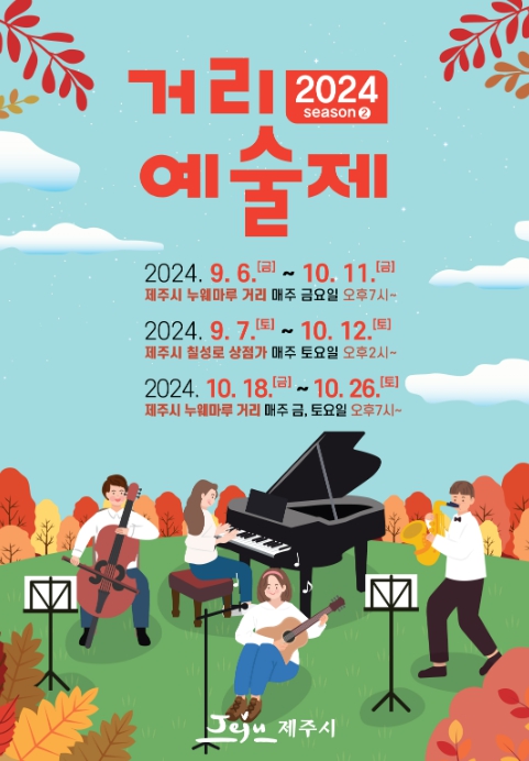 이번 하반기 거리예술제는 9월 6일부터 10월 26일까지 운영되지만 공연일에 따라 장소가 변경되니 귀한 걸음이 헛되지 않도록 관람 전 제주시 누리집 공지사항에서 공연 일정표를 확인해 주시기 바란다.