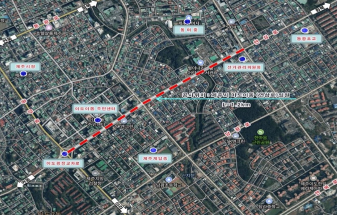 연삼로 이도광장~선거관리위원회 인도 구간은 보도블록이 설치된 지 10년 이상 지나면서 파손과 침하 등으로 보행자 안전을 위협하던 구간이며, 우천 시에는 물고임 현상 등으로 시민들의 통행에도 불편을 주고 있다.