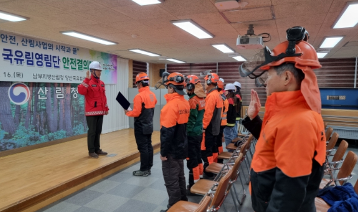 [뉴스서울] 산림청 양산국유림관리소는 숲가꾸기사업장의 중대재해 예방 및 근절을 위해 2025년 1월 16일 사업에 참여하는 국유림영림단 등 30여명이 참석한 ‘2025년 국유림영림단 안전결의대회’를 개최했다.