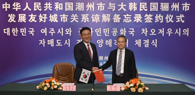 [뉴스서울] 여주시는 지난 1일 중국 광둥성 차오저우시(潮州市)와 교류협력 관계를 체결하는 양해각서(MOU)에 서명했다고 밝혔다.