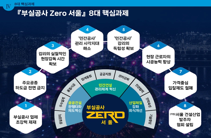 한편 서울시는 ‘부실공사 없는 안전 서울’을 위한 '서울형 건설혁신 대책'에서 내놓았던 3개 부문, 8가지 핵심과제를 추진 중이다.