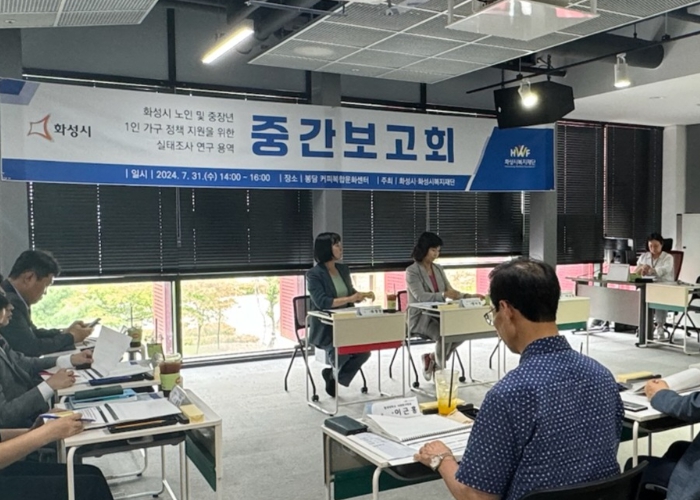 이에 따라 화성시는 이 같은 사회 변화에 선제 대응하고 지원 방안을 마련하기 위해 ‘화성시 노인 및 중장년 1인 가구의 정책 지원을 위한 실태조사 연구용역’ 중간 보고회를 7월 31일 개최했다고 밝혔다.