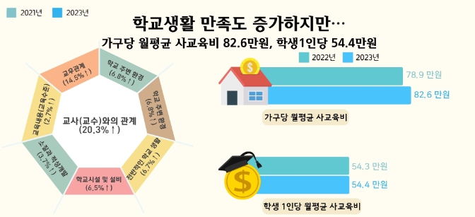| ▲ 학교생활 만족도 증가하지만, 사교육비도 꾸준히 늘어 |