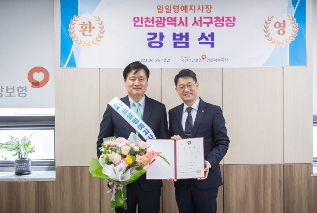 ▲ 강범석 인천 서구청장, 국민건강보험공단 인천서부지사 일일 명예 지사장 위촉 |
