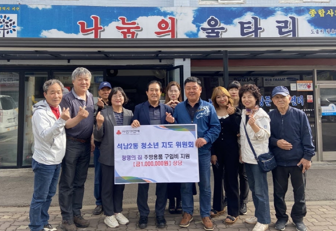[뉴스서울] 석남2동 청소년지도위원회는 지난 17일 광명의 집에서 결식 어르신들을 위해 운영하는 무료급식소의 주방용품 구입비를 위해 100만 원을 전달했다.
