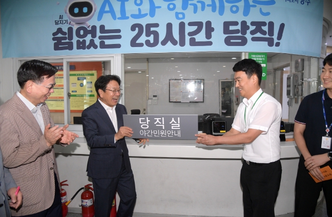 [뉴스서울] 광주광역시는 1일 인공지능(AI) 시대에 발맞춰 특광역시 중 처음으로 ‘직원 당직제’를 폐지, 뜨거운 안녕을 고했다. 대신 ‘AI 당지기’를 특별채용하고 당직 전담인력을 확보해 24시간 운영하는 재난안전상황실과 통합 운영한다.