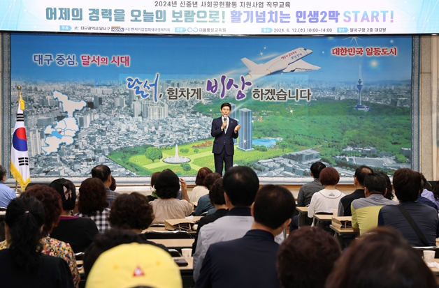 [뉴스서울] 대구 달서구가 12일 구청 2층 대강당에서'2024년 신중년 사회공헌활동 지원사업'의 참여자 직무교육을 실시했다.