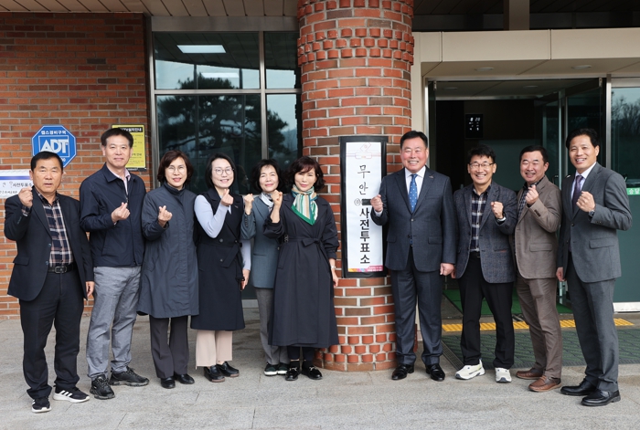 사전투표 첫날부터 무안군 9개 읍면에 설치한 사전투표소에는 소중한 주권을 행사하려는 유권자들의 발길이 이어지고 있다.