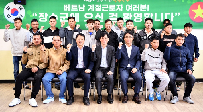 군은 지난 1일 장수읍 안양마을 팔공권역 커뮤니티센터에서 올해 공공형 계절근로자로 배정된 30명 중 1차 입국한 베트남 근로자 18명에 대한 입소식 및 환영 행사를 개최했다.