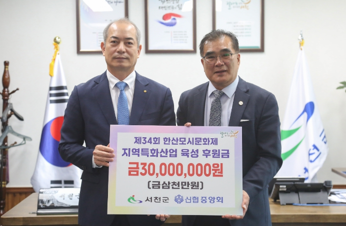 [뉴스서울] 서천군이 지난 21일 신협중앙회로부터 제34회 한산모시문화제와 함께 지역특화산업 육성을 위한 후원금 3000만원을 기탁받았다.