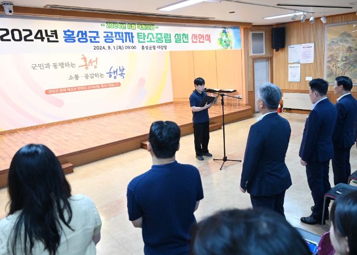 [뉴스서울] 홍성군은 기후변화 위기의 심각성을 인식하고 이에 대응하기 위해 1일 ‘2024 공직자 탄소중립 실천 선언식’을 개최하고 2050 탄소중립 실현을 위한 선도적인 행보에 나섰다.