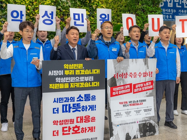박덕하 군공노 위원장은 “악성민원은 응대하는 직원들의 무기력함과 스트레스 등 개인의 고통을 넘어 행정력 낭비로 이어지고, 결국 시민들이 공공서비스를 받을 권리를 침해하는 요소가 될 수 있다”라며 “정당한 일반 민원에 대해서는 신속하고 정확하게 응대하겠지만, 폭언 · 폭행 등 악성민원에 대해서는 적극적인 대처를 할 계획”이라고 강한 의지를 밝혔다.