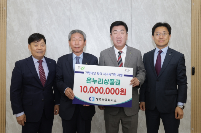[뉴스서울] 청주상공회의소는 8일 청주시청을 방문해 가정의 달을 맞이해 저소득가정을 위해 써달라며 온누리상품권 1만원권 1천매를 전달했다.