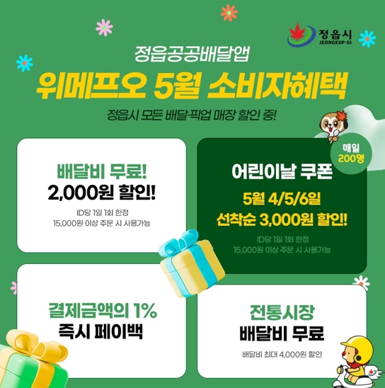 ▲ 정읍시, 공공배달앱 1주년 기념 5월 가정의 달 고객감사 이벤트 |