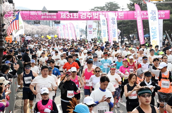 전국에서 가장 아름다운 마라톤 코스로 알려진 보문호는 물론 도심 전역이 벚꽃으로 만개한 가운데, 전국과 해외 각지에서 참가한 1만4천여명의 마라토너들은 2025 APEC 정상회의는 경주라는 구호와 함께 흩날리는 벚꽃의 아름다운 정취 속에서 천년고도의 봄 기운을 만끽했다.