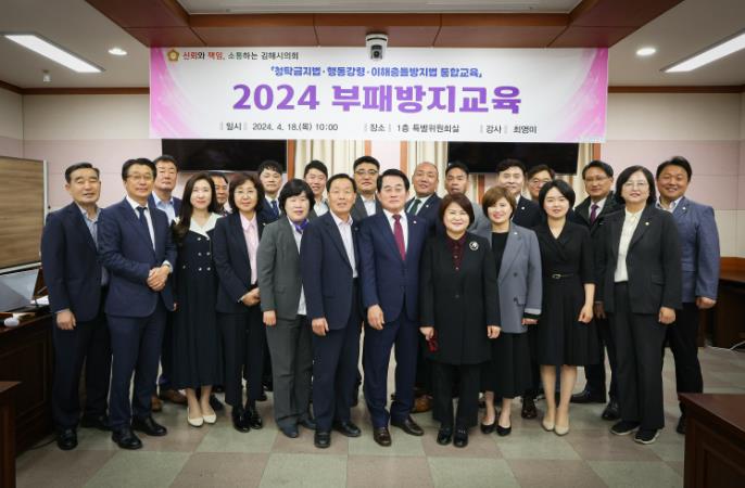 [뉴스서울] 김해시의회는 지난 18일, 시의회 1층 특별위원회실에서 시의원 및 의회사무국 직원을 대상으로 2024년 부패방지 교육을 실시했다.
