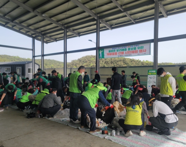 이날 행사에는 시기적으로 바쁜 농사철임에도 불구하고 평소 생활 쓰레기 배출에 대해 깊은 관심과 지역을 사랑하는 마음을 가진 새마을회, 자연보호협의회, 주민지원협의체, 이·통장연합회, 푸른환경운동본부, 지구시민연합 등 80여 명의 회원들이 참여해 종량제 봉투를 파봉해 재활용품을 직접 선별해 보는 체험을 진행했다.