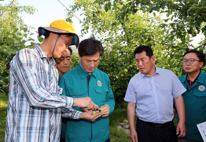 ▲ 안병구 밀양시장, 사과 착과율 피해지 현장 방문 |