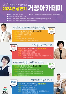 ‘거창아카데미’는 11월까지 이어지며, 참여를 희망하는 사람은 거창군평생교육센터 홈페이지에서 신청할 수 있다.