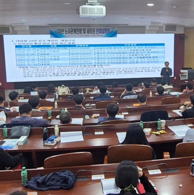 이날 강사로 나선 박동국 공인노무사는 2시간 동안 ‘노사관계 전망과 판례설명’이란 주제로 법령과 판례 분석을 통해 노사 간 상생 분위기를 조성할 수 있는 방안들을 제시했다.