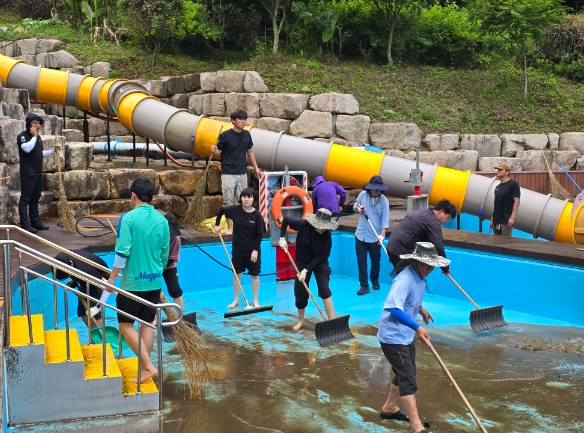 [뉴스서울] 강진군은 지난 21일, 제2회 수국길축제가 열리는 28일부터 30일까지 물놀이장 임시 개장을 위해 V-랜드 공원 및 물놀이장 대청소를 실시했다.