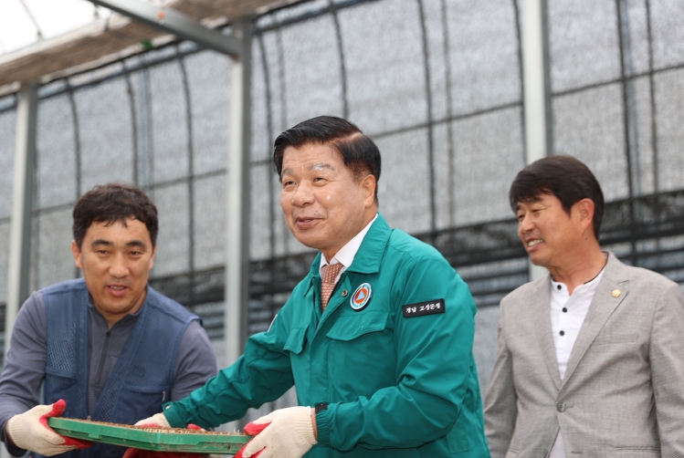 [뉴스서울] 이상근 고성군수는 지난 29일 마암면 보전리에 위치한 동고성농협 벼 육묘장 생산 현장을 방문 점검하고, 애로사항을 청취했다.