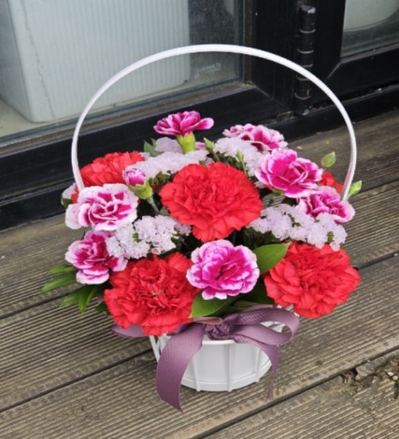 꽃 화분(바구니)은 카네이션 및 스타치스 등의 여러 송이의 꽃으로 구성되어 있으며, 시중 가격보다 최대 35% 저렴하게 상품을 구입할 수 있다.
