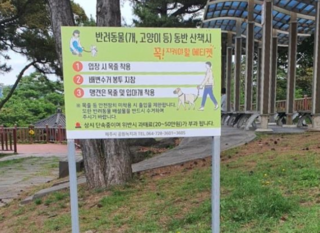 이에 제주시는 5월 31일까지 관내 도시공원 158개소를 대상으로 현수막과 안내판을 게시하고, 공원 이용자를 대상으로 펫티켓 홍보를 강화하고 있다.